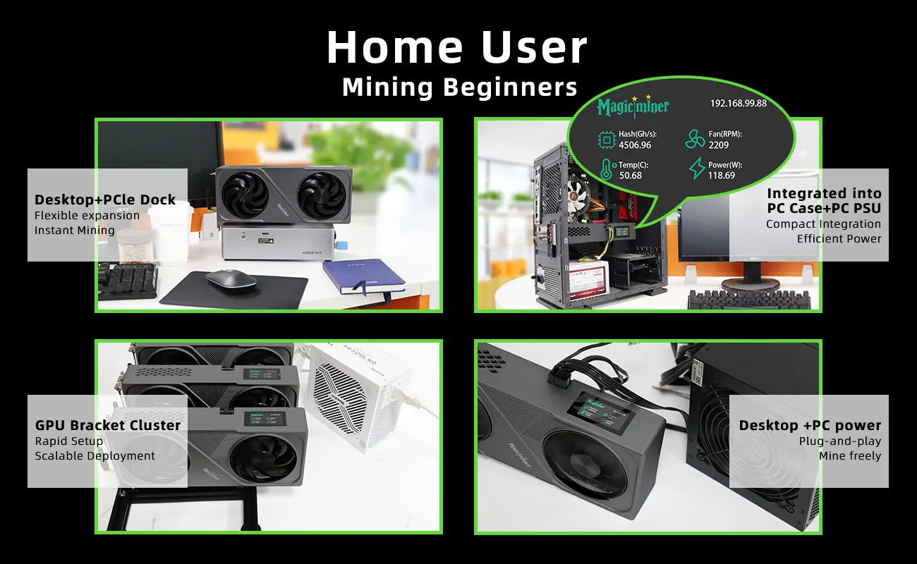 Ideal for beginners, low-cost entry, and everyday home mining