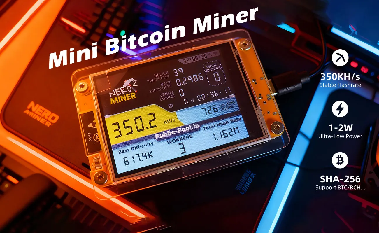 NerdMiner LV04 Bitcoin Miner 370KH/s Mini BTC Solo Lottery Mining Machine with 2.8 Inch Display Crypto Miner